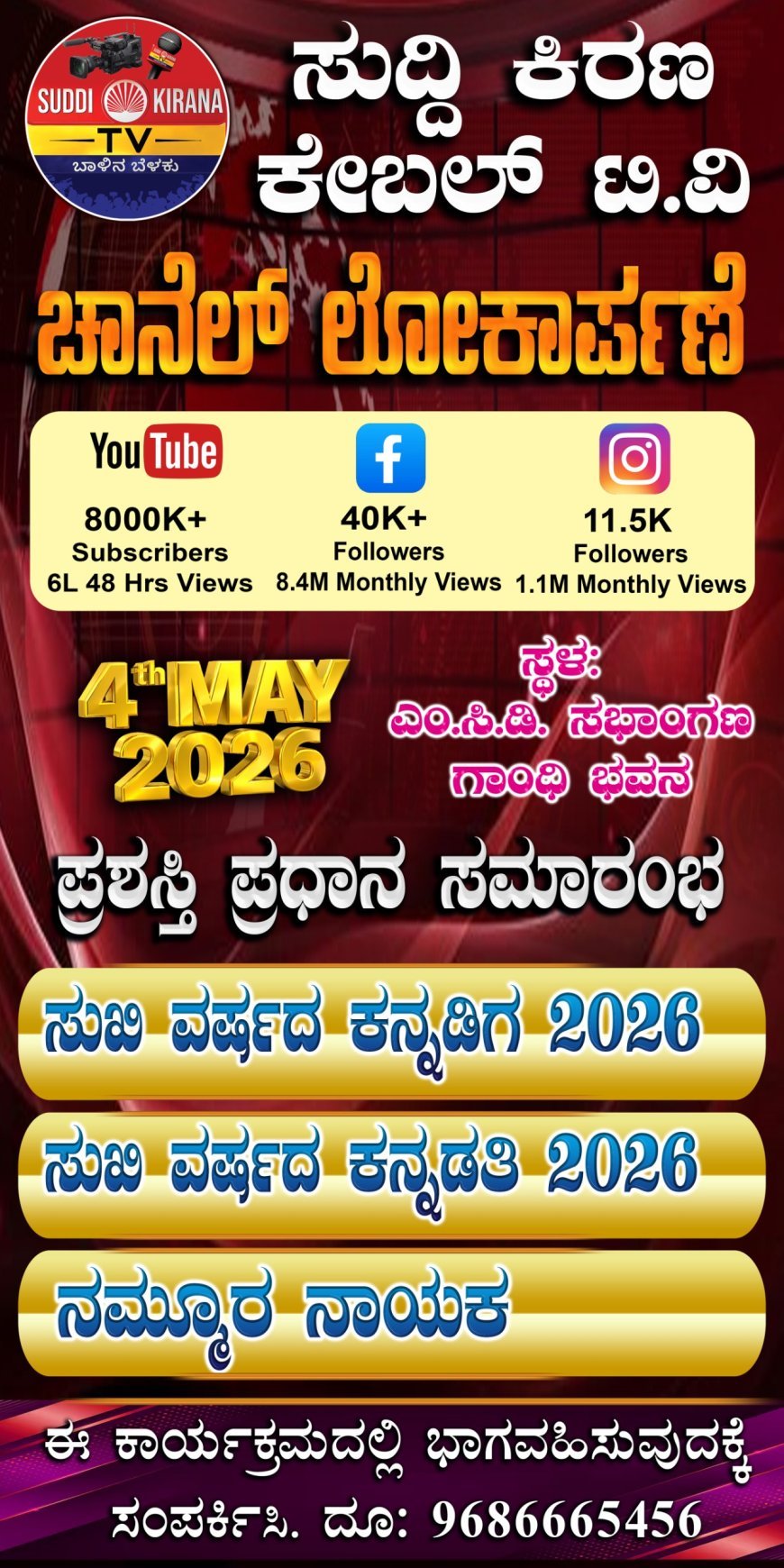 suddikirana ಸುದ್ದಿ ಕಿರಣ ಟಿವಿ ಬಾಳಿನ ಬೆಳಕು ಕರ್ನಾಟಕದ ಮಾಹಿತಿ ಮನರಂಜನಾ ಚಾನೆಲ್ ಆಗಿದೆ. ಇದು ಮನರಂಜನೆಯ ಜೊತೆಗೆ ಇತ್ತೀಚಿನ ಸುದ್ದಿ ಮತ್ತು ಮಾಹಿತಿಯನ್ನು ವೀಕ್ಷಕರಿಗೆ ತೋರುತ್ತಿದೆ. ಮತ್ತು ಸಮಾಜವು ತೆಗೆದುಕೊಳ್ಳುವ ದಿಕ್ಕು ಮಾಹಿತಿಯಿಂದ ಪ್ರಭಾವಿತವಾಗಿರುತ್ತದೆ ಎಂದು ನಾವು ಅರ್ಥಮಾಡಿಕೊಂಡಿದ್ದೇವೆ. ಸುದ್ದಿ ಕಿರಣ ಟಿವಿ ಹಲವು ವಿಷಯಗಳಲ್ಲಿ ಪ್ರವರ್ತಕವಾಗಿದೆ. ಇದು ತನಿಖಾ ಪತ್ರಿಕೋದ್ಯಮ. ಮತ್ತು ತಾಂತ್ರಿಕ ಕೈಗಾರಿಕೆಗಳ ವೃತ್ತಿಪರರಿಂದ ಪ್ರಚಾರ ಮಾಡಲ್ಪಟ್ಟ ಚಾನೆಲ್ ಆಗಿದೆ. ಸುದ್ದಿ ಕಿರಣ ಟಿವಿ ಇತ್ತೀಚಿನ ತಂತ್ರಜ್ಞಾನಗಳೊಂದಿಗೆ ಗುಣಮಟ್ಟದ ಸಂಪನ್ಮೂಲಗಳನ್ನು ಸಂಯೋಜಿಸಲು ಪ್ರಯತ್ನಿಸುತ್ತದೆ. Chief Editor B.S.Mallikarjuna Reddy # 560, 3ನೇ ಮಹಡಿ, 1ನೇ ಮುಖ್ಯ ರಸ್ತೆ, ಯಶವಂತಪುರ ಬೆಂಗಳೂರು-560022., Email: suddikiranatv@gmail.com Email:suddikiranaa@gmail.com www.suddikirana.com ಸುದ್ದಿ ಮತ್ತು ಜಾಹೀರಾತಿಗಳಿಗಾಗಿ ಸಂಪರ್ಕಿಸಿ ಕಛೇರಿ 08041505268 ಸಂಚಾರಿ ವಾಣಿ 9686665456